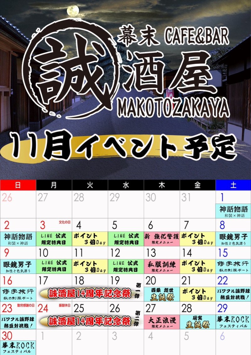 11月も誠酒屋で楽しい時間を過ごしましょう🍁✨