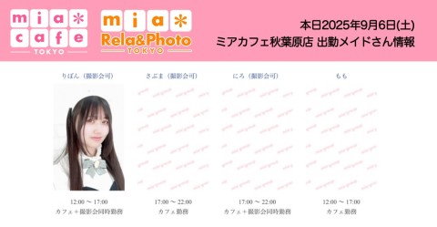 👑本日9月6日(土)のミアカフェ秋葉原店