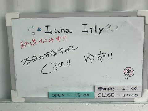 | 営業時間 | 平 日 15:00〜22:00 土日祝 14:00〜22:00 または 13:00~21:00 (21時または20時受付終了) | ||||||||||||||