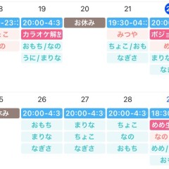 | 営業時間 | 月〜木18:00~23:30 金18:00~5:00 土17:00~5:00 日17:00~23:30 | ||||||||||||||