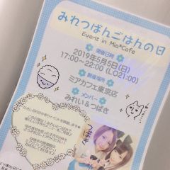 | å¶æ¥æé | âãã¢ã«ãã§æ±äº¬åºïŒã¡ã€ãã«ãã§ïŒhttp://www.mia-cafe.com/ãâ â¡å¹³æ¥ãæïœéãïŒïŒïŒïŒïŒïœïŒïŒïŒïŒïŒ â¡åæã»æ¥æã»ç¥æ¥ãïŒïŒïŒïŒïŒïœïŒïŒïŒïŒïŒ â å®äŒæ¥ããªãïŒ2019幎1æããå®äŒæ¥å»æ¢ïŒ â¡ã©ã¹ããªãŒããŒãéåºã®ïŒïŒåå ãïŒïŒïŒïŒïŒéåºã®å ŽåâïŒïŒïŒïŒïŒã©ã¹ããªãŒããŒ å¶æ¥æ¥ãåºå€ç¶æ³ã«ã€ããŠã¯ãã¡ãã http://pandaland.cutegirl.jp/mif/c_cms_csv/sch_top.php âãã¢ãªã©ïŒãã©ãæ±äº¬åºïŒæ®åœ±äŒïŒãªãã¬ïŒhttp://www.mif-lr.com/ãâ â¡å šæ¥ãïŒïŒïŒïŒïŒãïŒïŒïŒïŒïŒãã§ãããªã©ã¯ãŒãŒã·ã§ã³åºå€ã¹ã¿ãããããæé垯ã®ã¿å¶æ¥ã§ãã â å®äŒæ¥ã¯äžå®äŒïŒåºå€ã¹ã¿ãããããæé垯ã®å¶æ¥ïŒ â¡æçµåä»ãéåºã®ïŒïŒåå ãïŒïŒïŒïŒïŒéåºã®å ŽåâïŒïŒïŒïŒïŒïŒïŒïŒïŒïŒïŒè¿ã«æœè¡æéãçµããã³ãŒã¹ïŒ â»é«æ ¡çäžå¯ âæ·±å€å¶æ¥ã«ã€ããŠã¯ãå ¬åŒãµã€ãå³äžã® http://market.chu.jp/schedule1/sche37.cgi ãã¢ã°ã«ãŒãç·åã¹ã±ãžã¥ãŒã«ïŒïŒ°ïŒ£ã»ã¹ããïŒ http://market.chu.jp/schedule1/sche37.cgi?dm=1 ãã¢ã°ã«ãŒãç·åã¹ã±ãžã¥ãŒã«ïŒã¬ã©æºåž¯ïŒ ãã芧ãã ãããåç¥æ¥ã®ã¿å¶æ¥ãšãªããŸããåç¥æ¥ä»¥å€ã¯æ·±å€å¶æ¥ããããŠãããŸããã æ·±å€å¶æ¥å¯Ÿè±¡æ¥ãïŒïŒïŒïŒïŒãç¿æïŒïŒïŒïŒïŒïŒ¬ïŒïŒ¯ïŒïŒïŒïŒïŒïŒ | ||||||||||||||