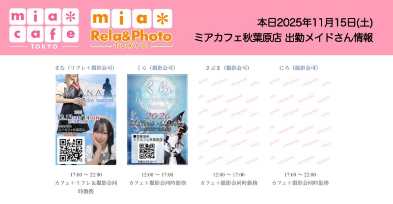 👑本日11月15日(土)のミアカフェ秋葉原店
