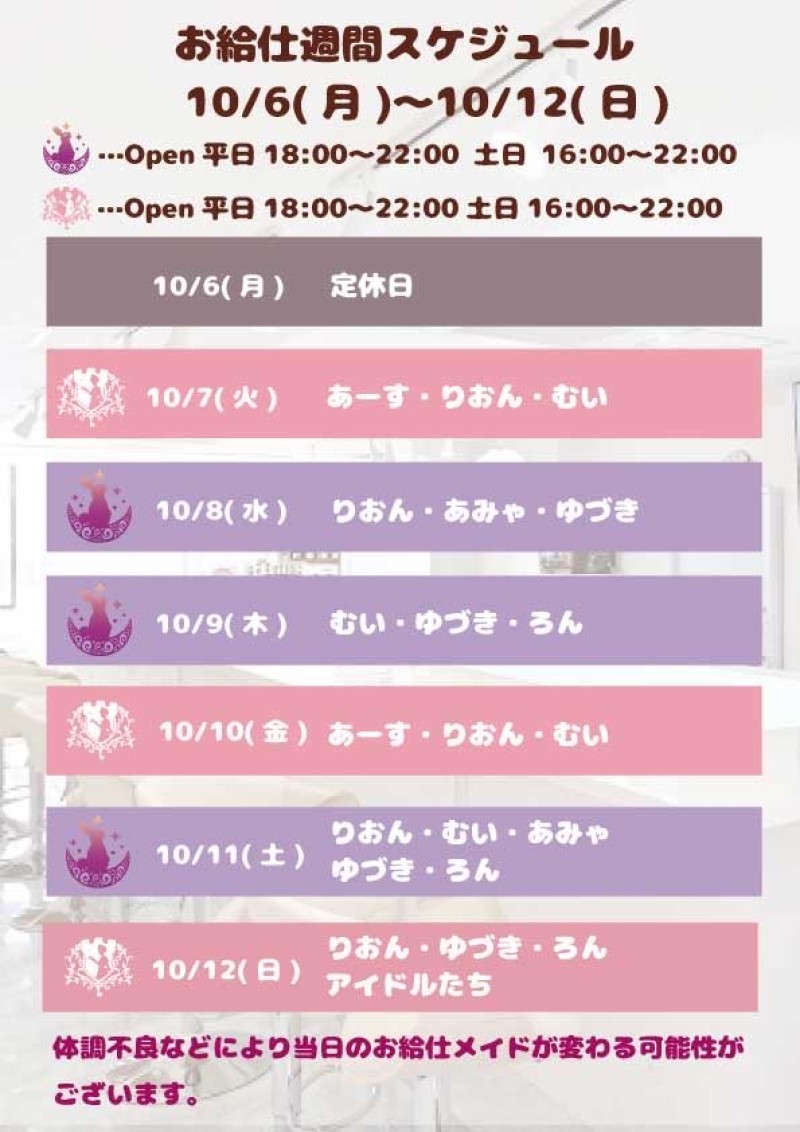 【お給仕週間スケジュール】